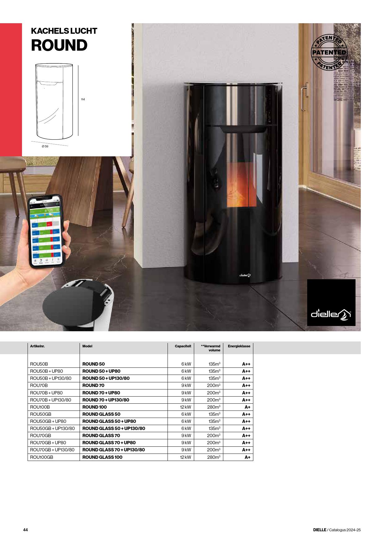 Technische gegevens Dielle Round 50 (Staal, Glas)